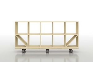 壁一面の本棚 奥行350 ロータイプ 縦2コマ-横5コマ キャスター付き / Shelf