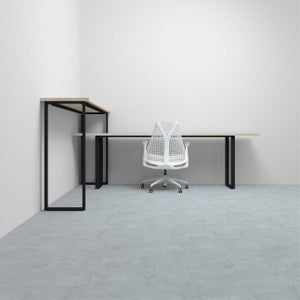 コーナーに沿ってL字型に配置する ラバーウッド(ホワイト) / Tavola